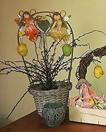 Egy kosárkába oázist tettem és pár ágat beleszurkáltam. Tavasztündérkéket és színes tojásokat aggattam a kosár fülére.